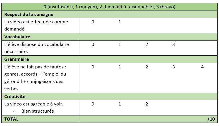 Téléchargez le document de Word. Remplissez la grille d'auto-évaluation et envoyez moi votre version complétée par mail.