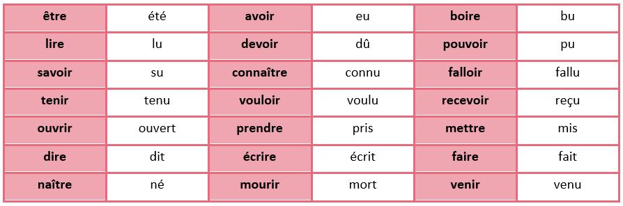 1. Appuyez sur l'image et donnez le participe passé des verbes suivants.